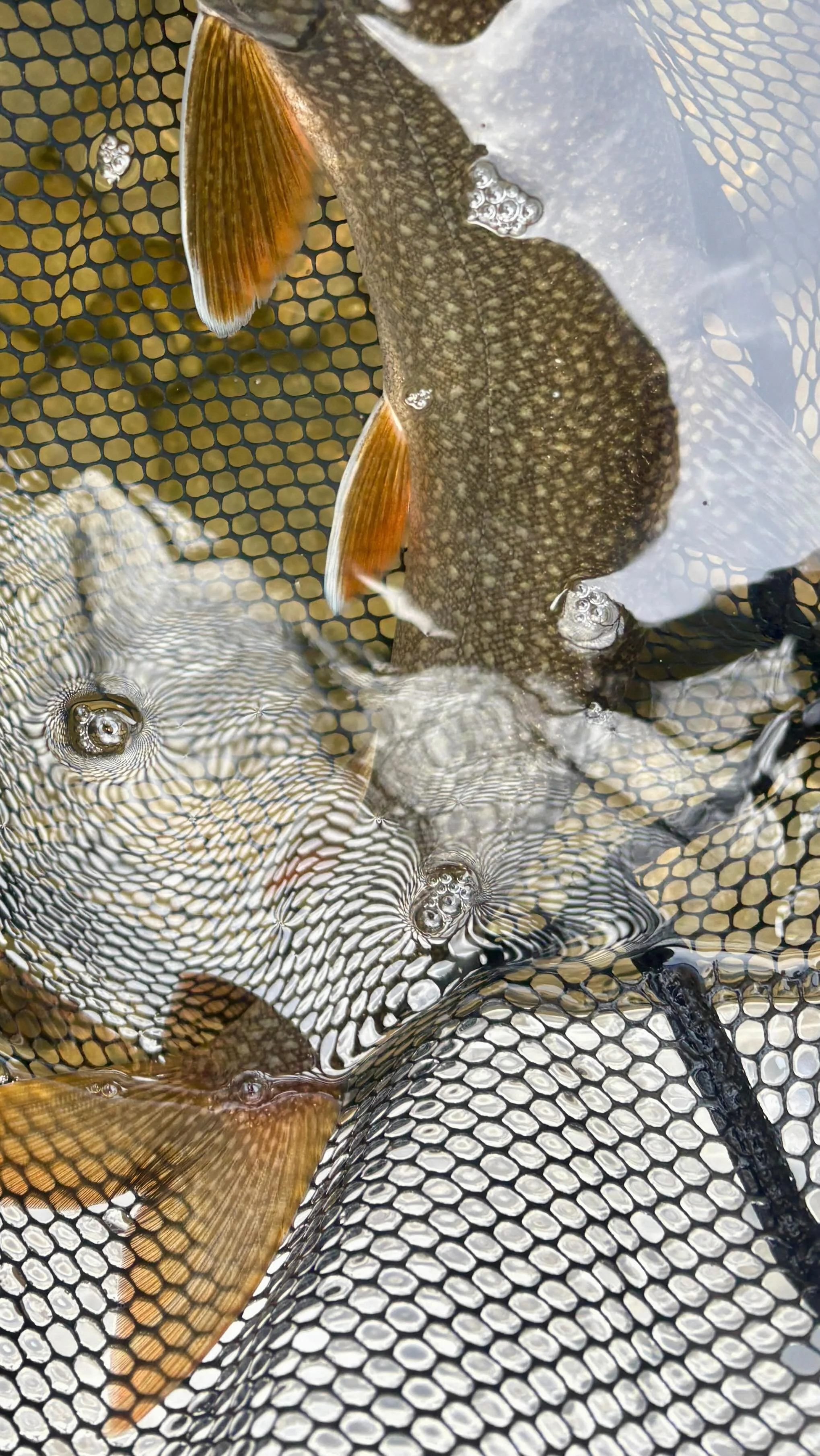 Rainbow Trout, Brown Trout, Mountain White Fish, Cutbow, Cutthroat Trout, Pike, Carp, Bass, Panfish, Chubs, suckers, and other exotics!